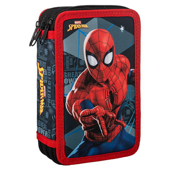 Puna pernica PLAY 3 zipa - Spiderman red ističe se originalnim dizajnom i izrađena je od visokokvalitetnog materijala. Punjena je školskim priborom i sadrži: 18 Sazio drvenih bojica, 18 Sazio flomastera, 2 grafitne olovke, 2 hemijske olovke, rezač, gumicu i 2 lenjira.
