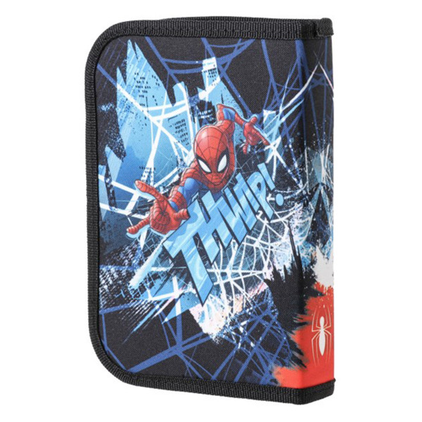 Puna pernica PLAY 1 zip - Spiderman ističe se originalnim dizajnom i izrađena je od visokokvalitetnog materijala. Punjena je školskim priborom i sadrži: 12 Sazio drvenih bojica, 12 Sazio flomastera, grafitnu olovku, hemijsku olovku, rezač gumicu i lenjir.