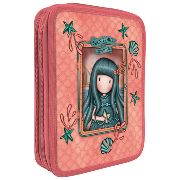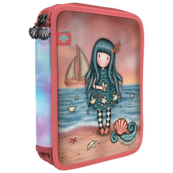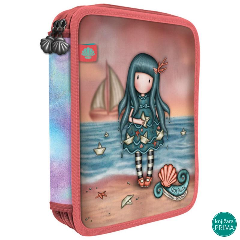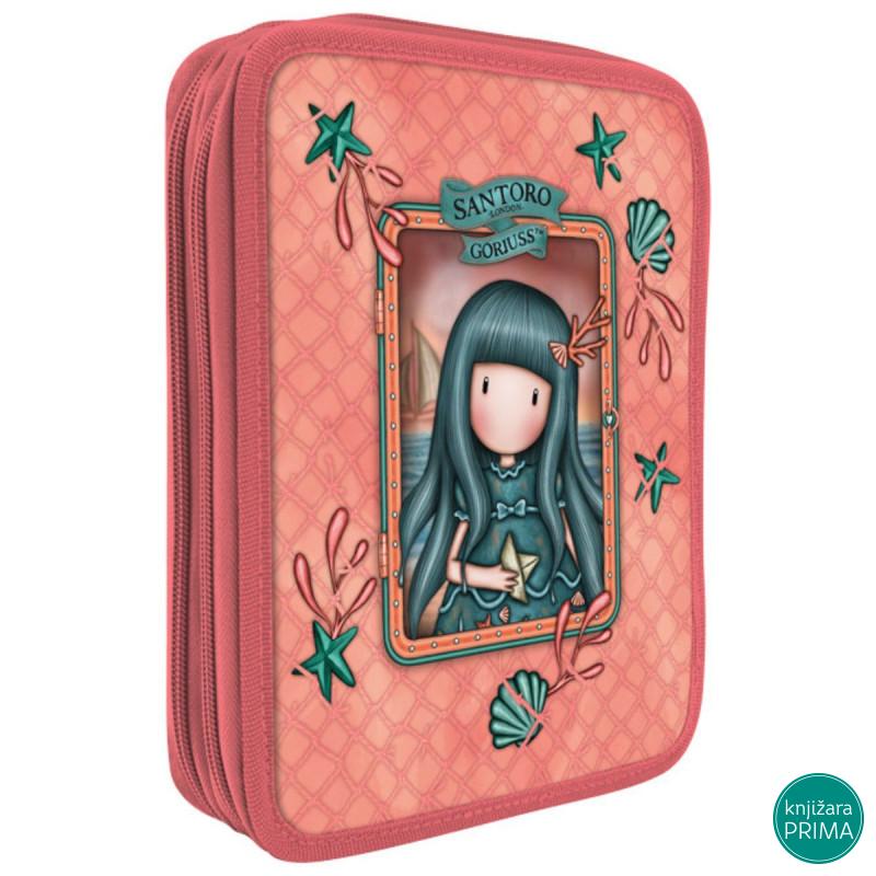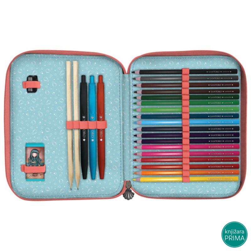 pernica puna; 2 zipa; punjena sa 46 komada pribora: flomaster školski 18 boja, boje drvene 18 boja, olovka grafitna HB x 2 komada, rezač, gumica, lenjir 15 cm, trougao; uglomer olovka hemijska x 3 komada (crna, crvena i plava), dimenzija: 23,5x19x4 cm