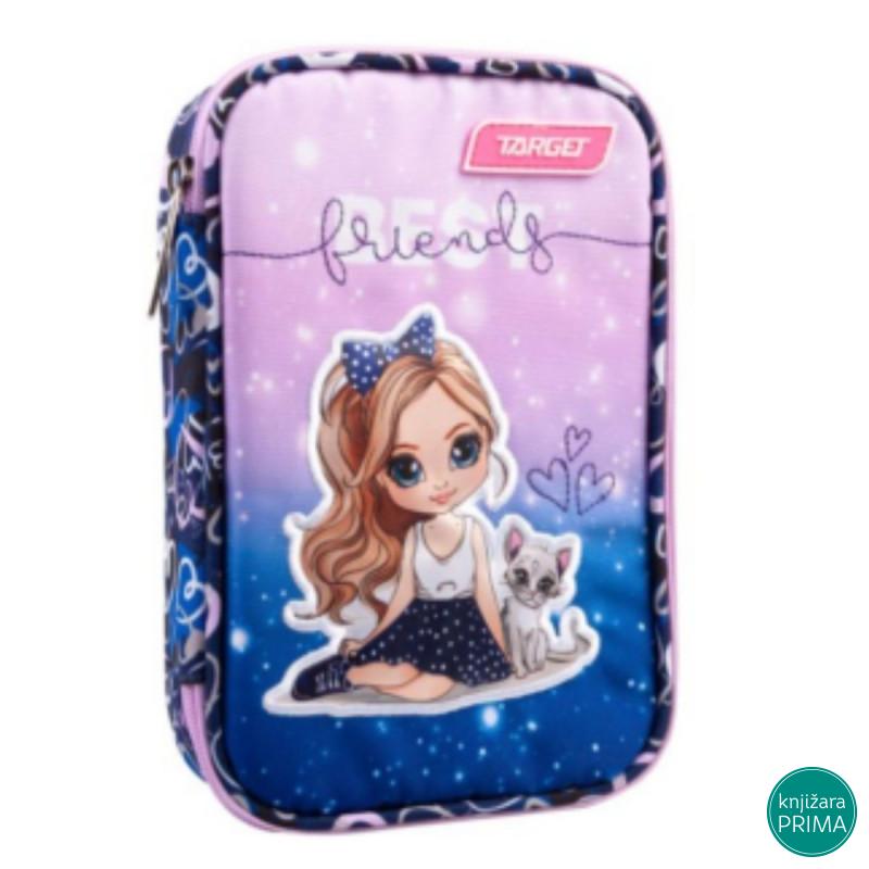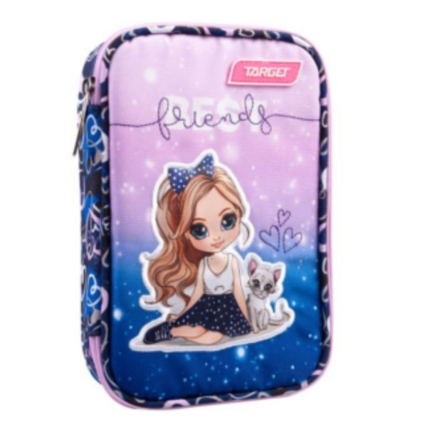 Puna pernica poznatog brenda Target, sadrži pribor neophodna svakom školarcu: 12 flomastera,12 bojica, 3 hemijske olovke, 2 grafitne olovke, zarezač, gumicu, makaze i lepak.