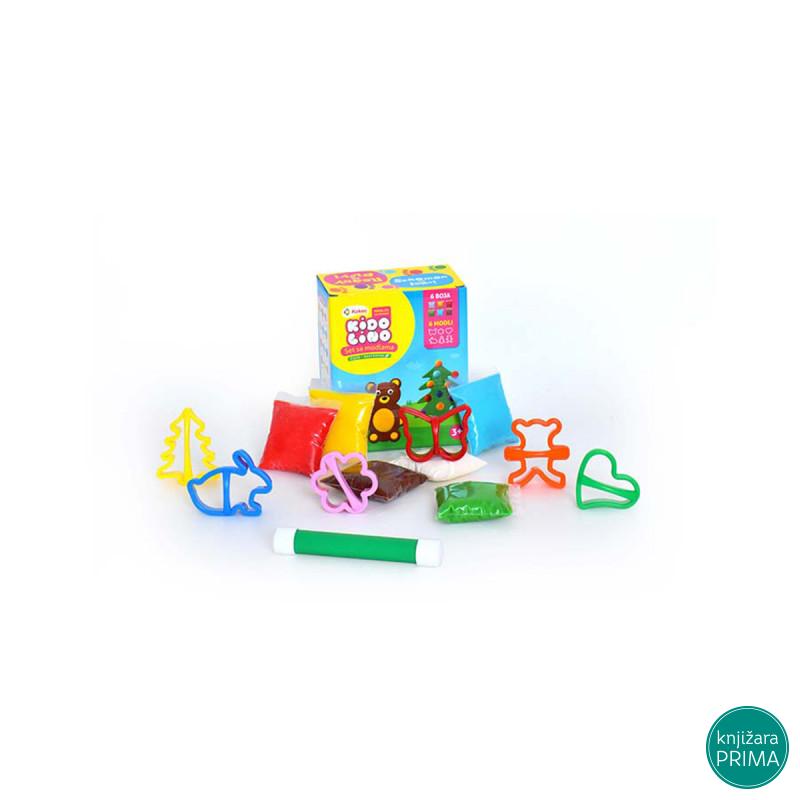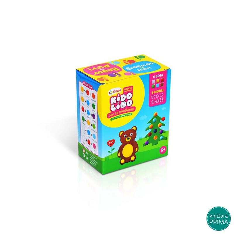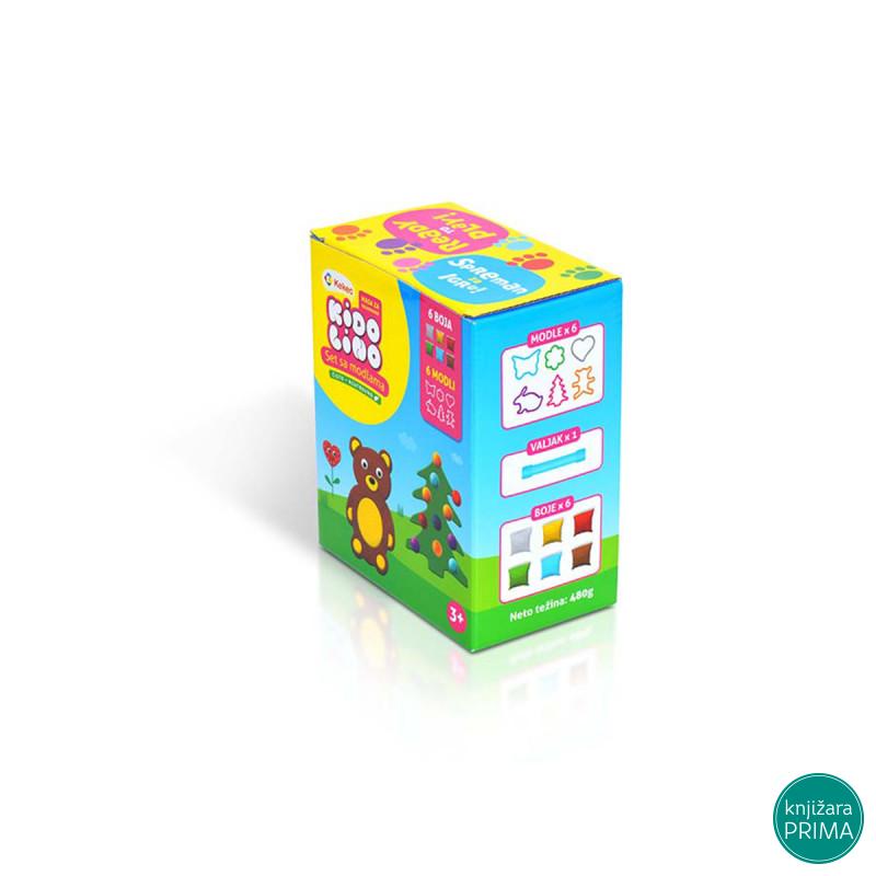 Set sadrži 6 kesica Kidolino plastelina 6 modlica i valjak Kidolino je super mekana masa za oblikovanje namenjena deci mlađeg uzrasta. Svojom finom i nežnom strukturom omogućava lako modelovanje i podstiče razvoj motoričkih sposobnosti kod dece. Kroz upoznavanje sa različitim oblicima i figurama deca kroz igru stvaraju svoja prva umetnička dela. Napravljen je od prirodnih materijala pa boje se mogu mešati i time dobijati druge boje ili nijanse postojećih boja. Kidolino masa za oblikovanje je sušiva na vazduhu pa je zato upakovana u zip kesice u koje se nakon igranja može vratiti i ponovo koristiti.. Detaljnije