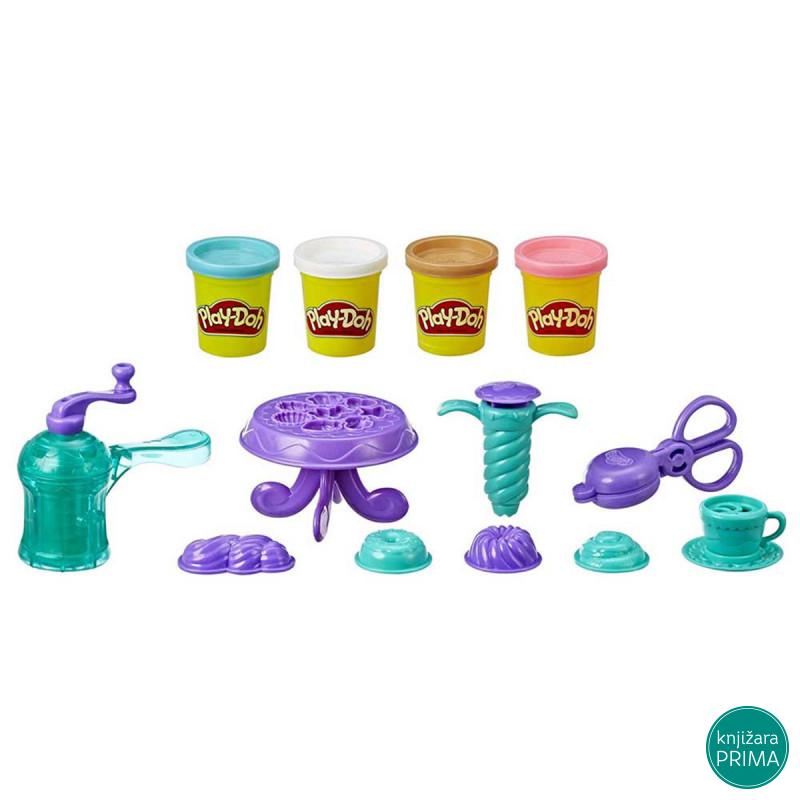 Zatvori okice i zamisli najlepše krofnice! Da li su to krofnice u svim duginim bojama? Jednorog krofnica? Pahuljica krofnica? Mačkasta krofnica? Napravi nam svoju krofnicu iz snova! Izaberi boju stavi kuglicu u modlu onda napravi rupicu i ukrasi filom i šarenim mrvicama! Poredjaj ih na tacnicu i posluži uz šolju bele kafe sa puuuno šlaga! Uzrast: 3+ godine Materijal: plastika masa za modelovanje na bazi pšeničnog brašna karton Dimenzije: 65 x 20 x 22 cm Set sadrži: izložbeni štand za izlaganje krofnica modlu alat za rupicu fil-špric šolju i tacnicu 4 kantice Play Doh-a i kartice sa idejama. Detaljnije