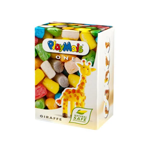 ONE model “Napravi žirafu” namenjen je za pravljanje 1 žirafe od Playmais delova. Pakovanje sadrži 70 komadića za igru i instrukcije u boji. Dete najčešće ne potroši ceo sadržaj kutije za pravljanje 1 figure te se ostatak može iskoristiti za slobodne aktivnosti dekoraciju predmeta iz kuće ukrašavanje papira ili pravljenje čestitki. Dimenzije: 9.65 × 7.3 × 14.1 cm Sastav: Kukuruzni skrob voda i prehrambene boje. Prirodno bezbedno i 100% biorazgradivo. Detaljnije