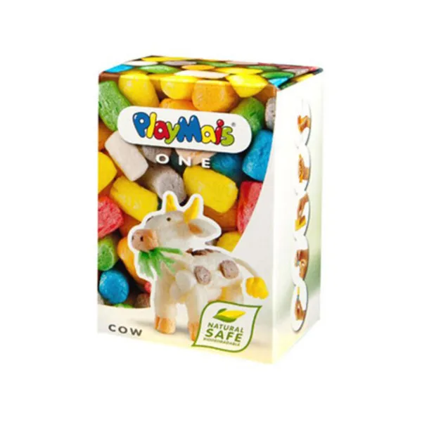 ONE model “Napravi kravicu” namenjen je za pravljanje 1 kravice od Playmais delova. Pakovanje sadrži 70 komadića za igru i instrukcije u boji. Dete najčešće ne potroši ceo sadržaj kutije za pravljanje 1 figure te se ostatak može iskoristiti za slobodne aktivnosti dekoraciju predmeta iz kuće ukrašavanje papira ili pravljenje čestitki. Dimenzije: 9.65 × 7.3 × 14.1 cm Sastav: Kukuruzni skrob voda i prehrambene boje. Prirodno bezbedno i 100% biorazgradivo