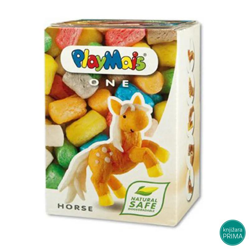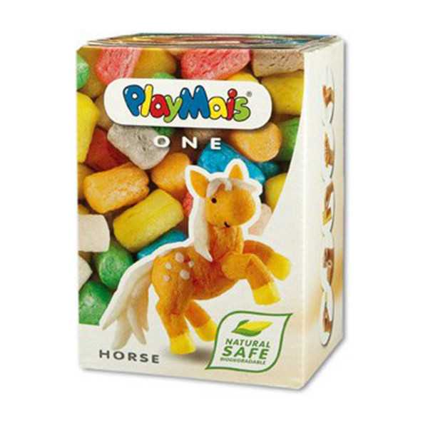 ONE model “Napravi konja” namenjen je za pravljanje 1 konja od Playmais delova. Pakovanje sadrži 70 komadića za igru i instrukcije u boji. Dete najčešće ne potroši ceo sadržaj kutije za pravljanje 1 figure te se ostatak može iskoristiti za slobodne aktivnosti dekoraciju predmeta iz kuće ukrašavanje papira ili pravljenje čestitki. Dimenzije: 9.65 × 7.3 × 14.1 cm Sastav: Kukuruzni skrob voda i prehrambene boje. Prirodno bezbedno i 100% biorazgradivo