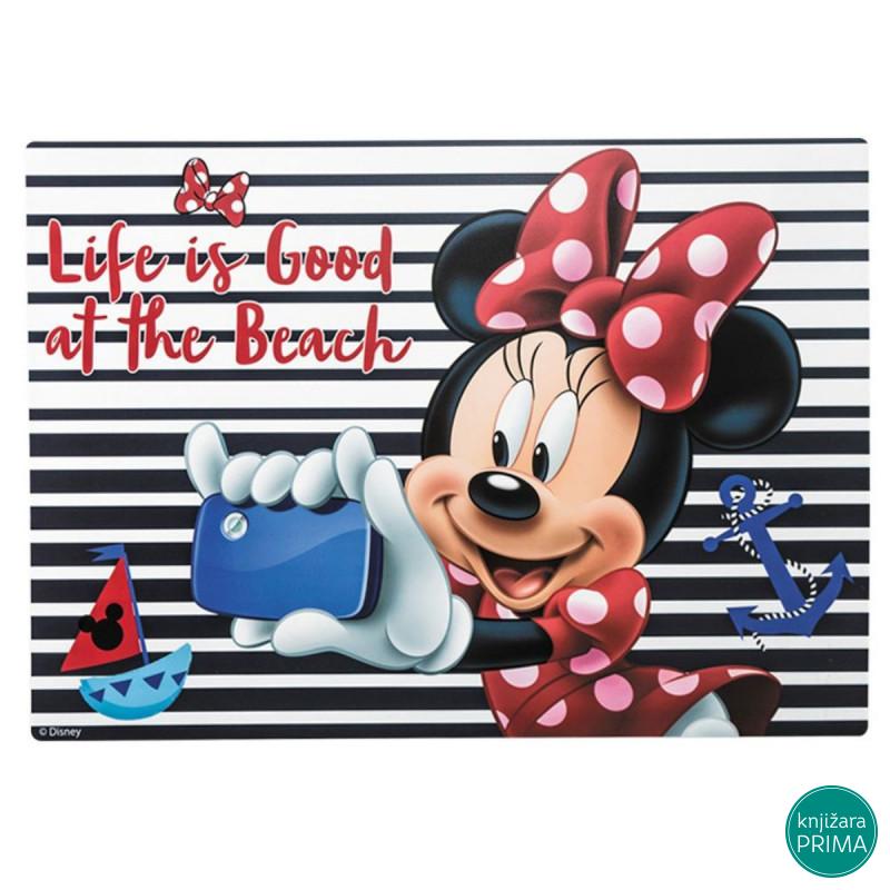 Pravougaona podloga atraktivnog dizajna Minnie Mouse koja služi kao zaštita predmeta prilikom slikanja vodenim bojama ili temperama.