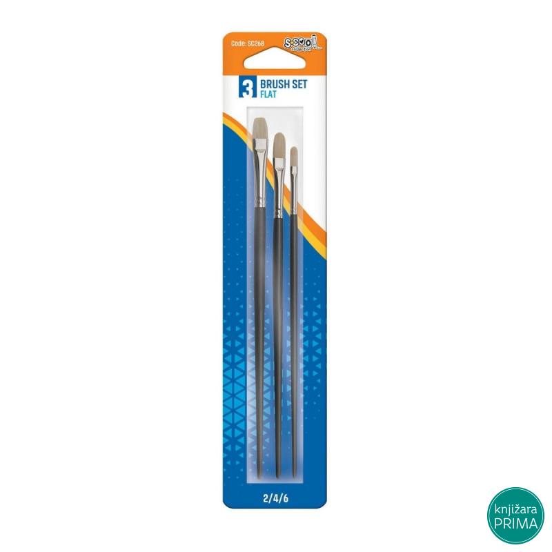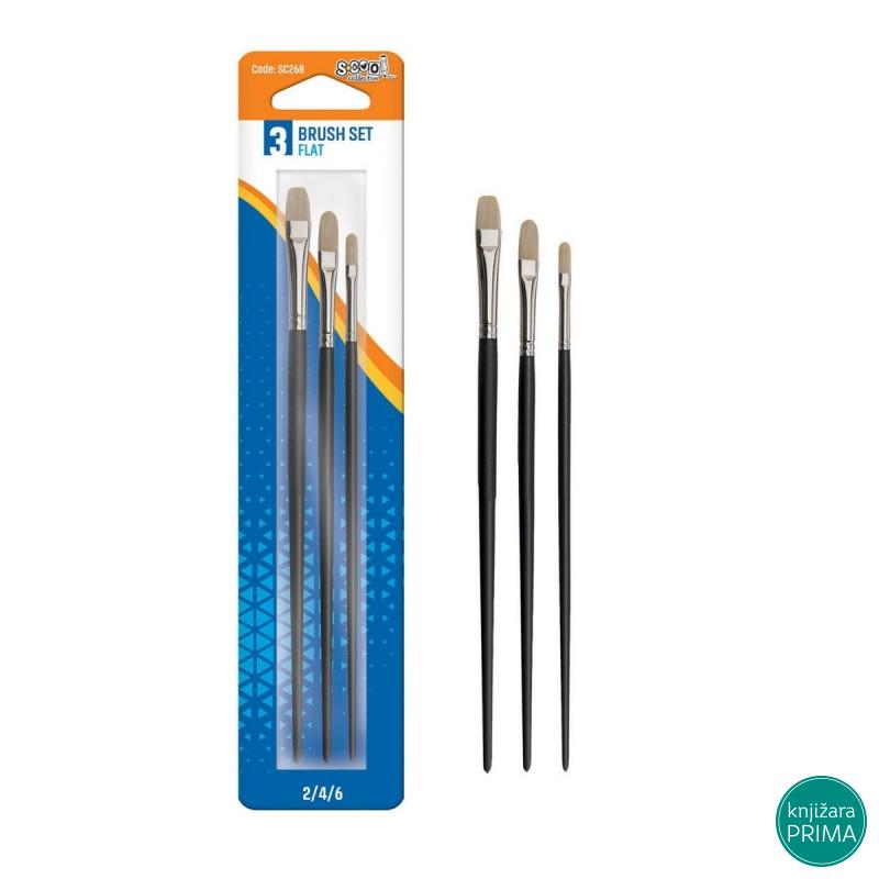 Set od 3 ravne četkice različitih veličina brenda Scool namenjene za slikanje sa temperama. Veličine četkica u setu: 2 . 4 . 6 .