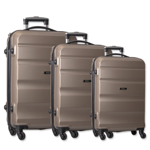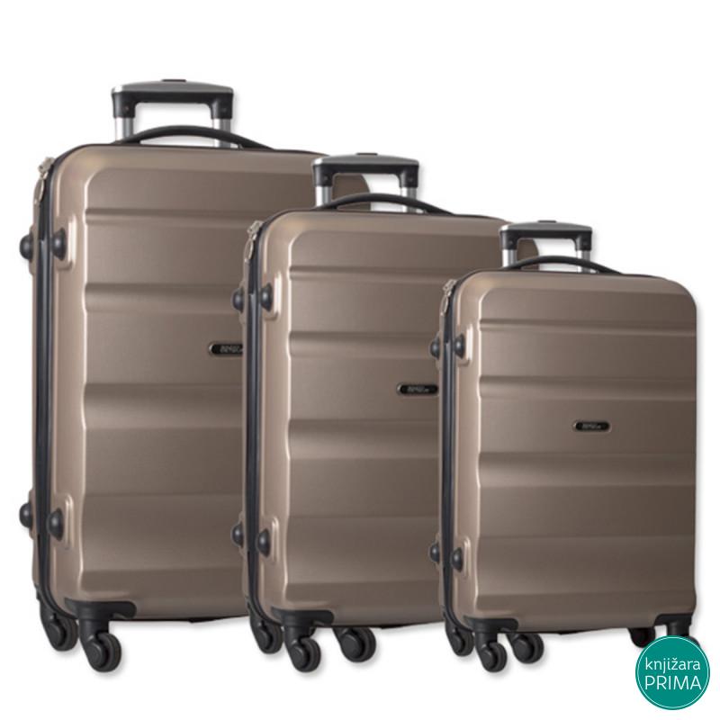 Komplet 3/1 set kofera u zlatnoj boji, idealan je komplet kofera za celu porodicu. Sve što vam je potrebno za zimsko ili letnje putovanje bez poteškoća. Koferi 3/1 seta poseduju duple točkove kao i teleskopsku ručku za vuču. Izrađeni su od ABS materijala, otpornog na habanje.