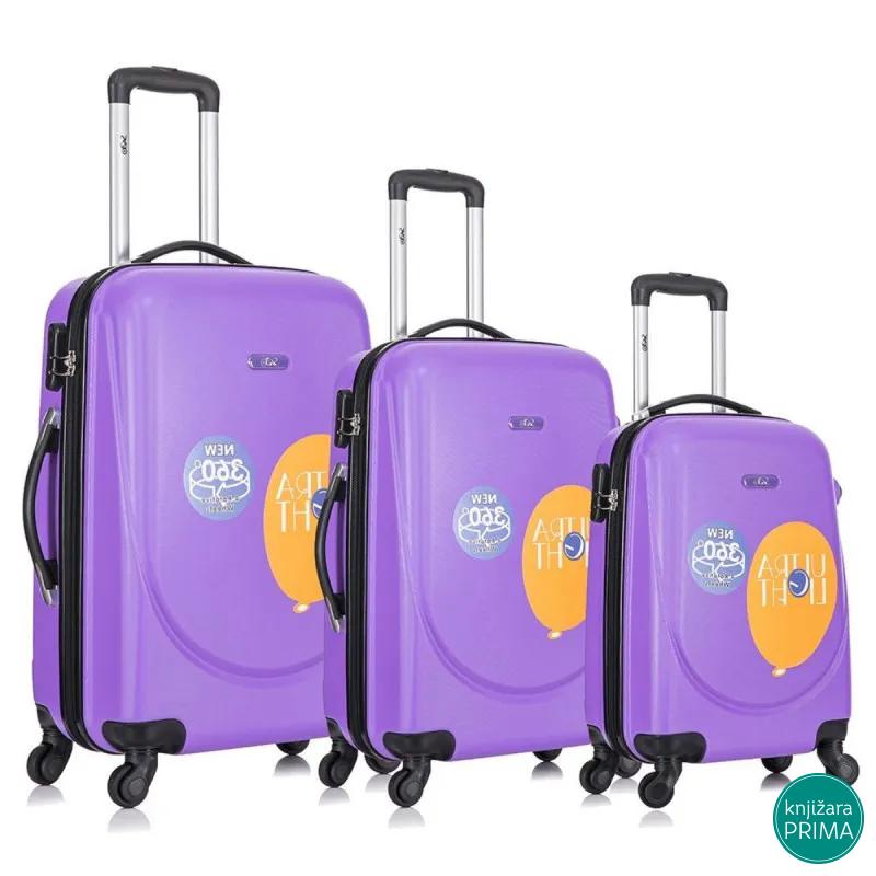 Komplet 3/1 set kofera u modernoj boji, idealan je komplet kofera za celu porodicu. Sve što vam je potrebno za zimsko ili letnje putovanje bez poteškoća. Komplet set kofera čine po jedan veliki, srednji i mali kofer. Koferi 3/1 seta poseduju točkove kao i teleskopsku ručku za vuču. Komplet koferi seta 3/1 izrađeni su od ABS materijala, otpornog na habanje.