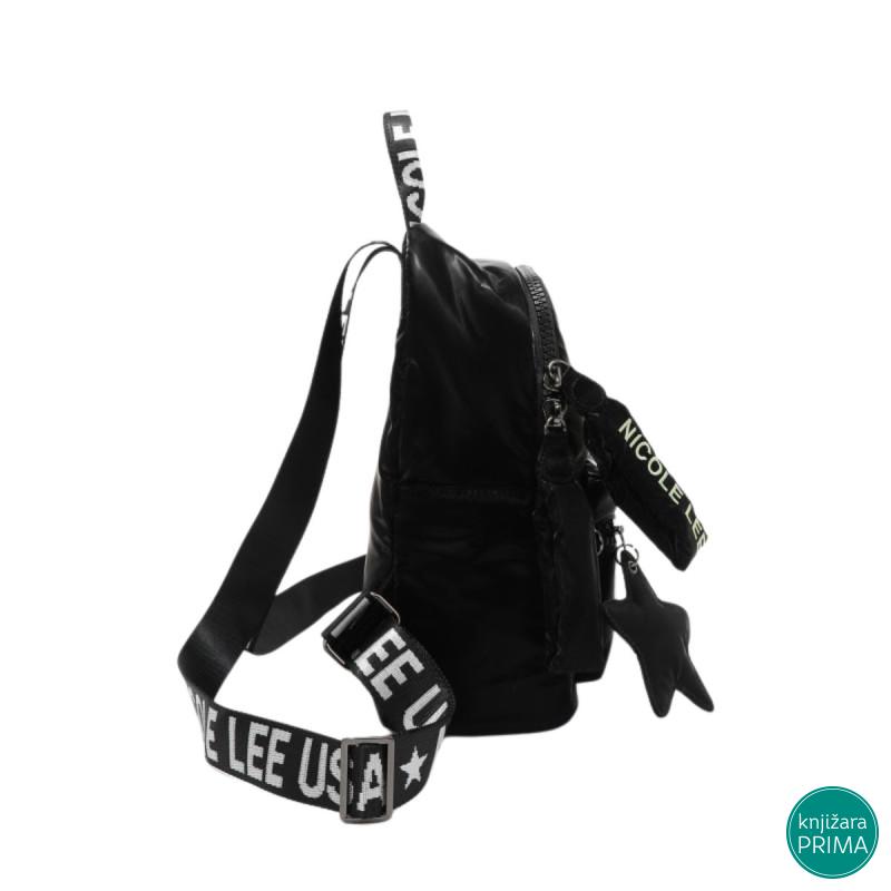 Ovaj pufnasti Nicole Lee modni ranac izrađen je od laganog, pufnastog materijala sa sjajnom završnicom, dajući mu trendi, savremeni izgled. Dvosmerni rajsferšlus se glatko otvara, dok prednji džep ima rajsferšlus sa zvezdastim priveskom za dodir elegancije. Detalji proizvoda: Lagani pufnasti poliester sa sjajnom završnicom. Dvosmerno zatvaranje rajsferšlusom sa priveskom na ručki. Ručka sa logom (pad od 8 cm) sa Nicole Lee autentičnim priveskom. Podesive naramenice sa logom Nicole Lee. Prednji džep sa rajsferšlusom ukrašen zvezdastim priveskom sa izvezenim NL logom. Prednji D-prsten za opcionalno pričvršćivanje priveza za ključeve. Logotip ukrašenim dijamantskim kamenčićima. Ekskluzivna unutrašnjost sa premium print dizajnom od poliestera. Zadnji unutrašnji džep sa rajsferšlusom, logotipom i prstenom za ključeve. Dva prednja unutrašnja džepa za mobilni telefon i novčanik.