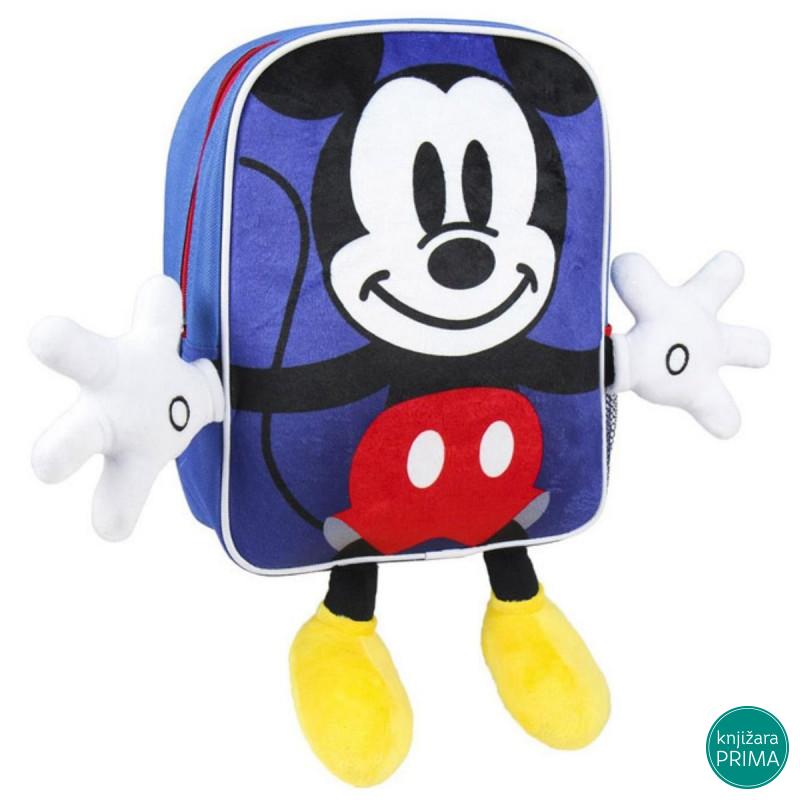 Ranac za vrtić Mickey Mouse, ima jednu glavnu prostranu pegradu, džep sa strane, naramenice i ručku za nošenje. Napravljen je od materijala: 100% poliester.
