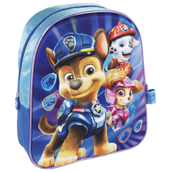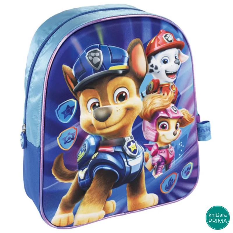 Ranac za vrtić Patrolene šape ima jednu glavnu pregradu džep sa strane ojačane naramenice i ručku za nošenje.