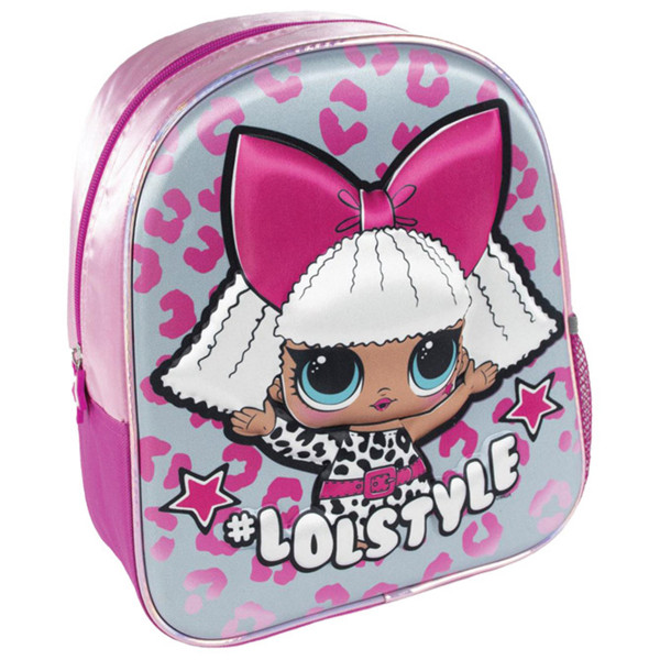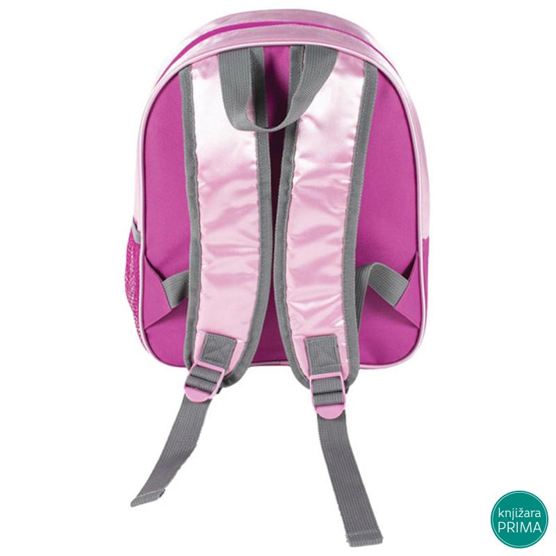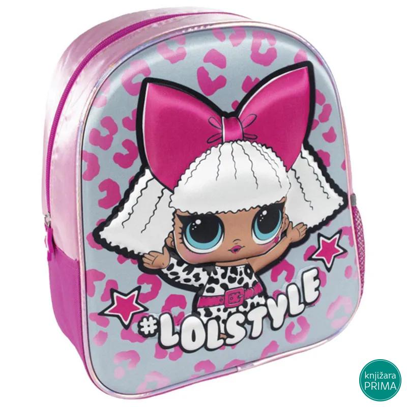 Ranac za vrtić LOL ima jednu glavnu pregradu džep sa strane ojačane naramenice i ručku za nošenje.