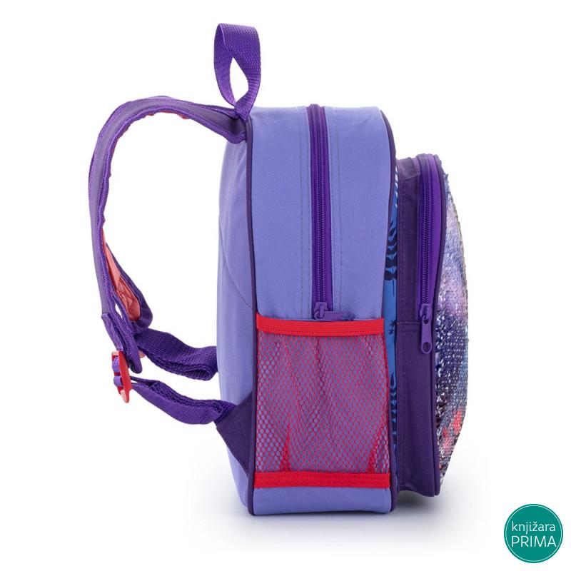 Manji ranac pogodan za decu predškolskog uzrasta. Ranac ima jedan veliki džep manji džep za užinu i bočne džepove za bocu za piće. Idealno za decu od 3 do 6 godina.
