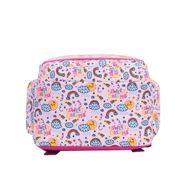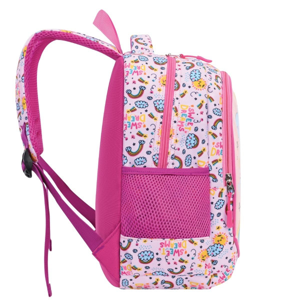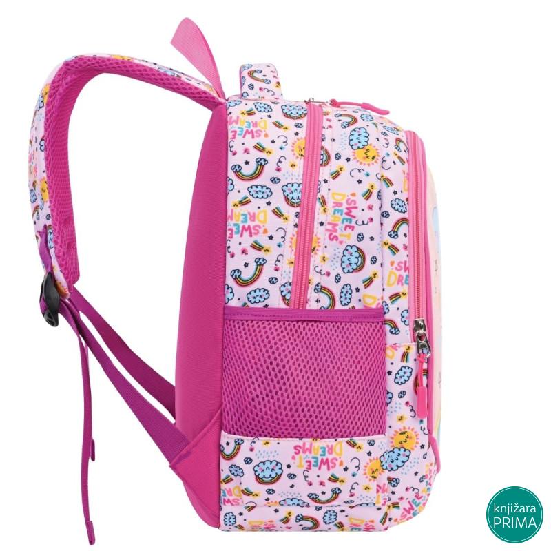 Atraktivan dečiji ranac specijalno dizajniran za predškolski uzrast. Veoma lagan i udoban za nošenje, sa ojačanim leđima, podesivim naramenicama i čvrstom ručkom. Napravljen od visokokvalitetnog materijala (900D) sa PVC površinskom obradom. Ranac ima jednu prostranu pregradu, prednji džep i dva bočna džepa.