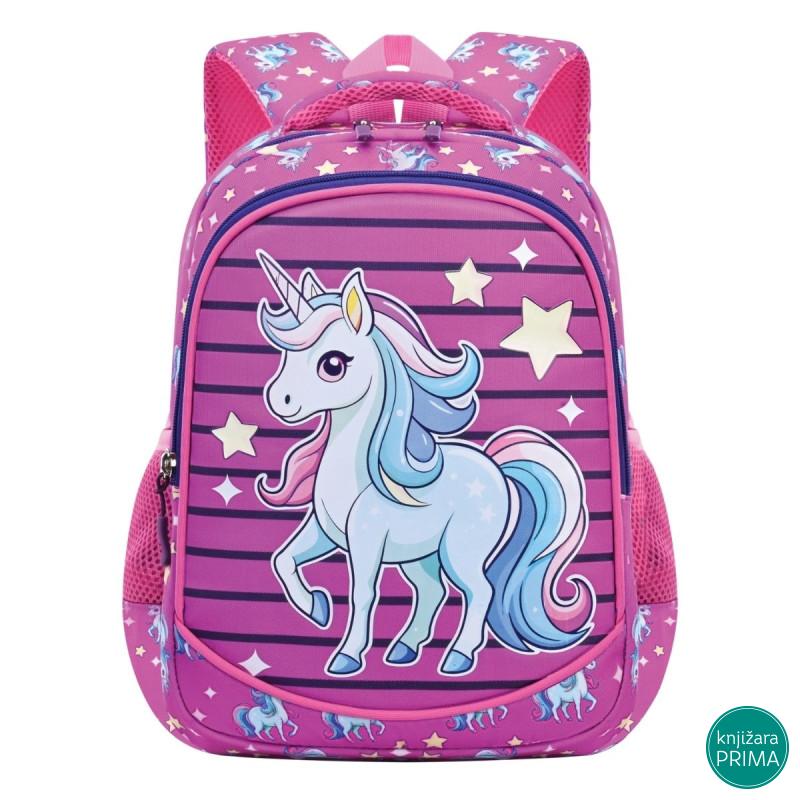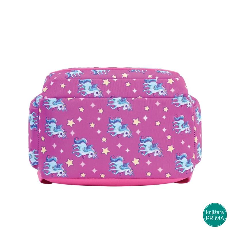Atraktivan dečiji ranac specijalno dizajniran za predškolski uzrast. Veoma lagan i udoban za nošenje, sa ojačanim leđima, podesivim naramenicama i čvrstom ručkom. Napravljen od visokokvalitetnog materijala (900D) sa PVC površinskom obradom. Ranac ima jednu prostranu pregradu, prednji džep i dva bočna džepa.