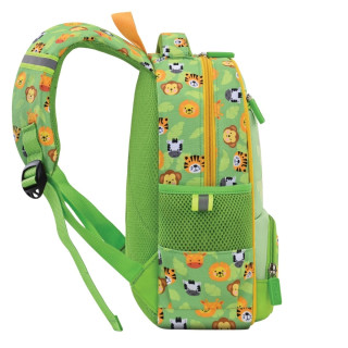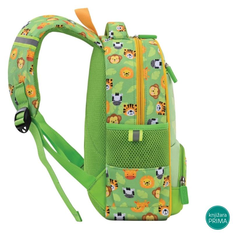 Atraktivan dečiji ranac, idealan za vrtić i predškolski uzrast. Veoma lagan i udoban, sa ojačanim leđima, podesivim naramenicama i čvrstom ručkom za nošenje. Napravljen od kvalitetnog materijala sa PVC površinskom obradom. Sadrži prostranu pregradu, prednji džep i dva bočna džepa.
