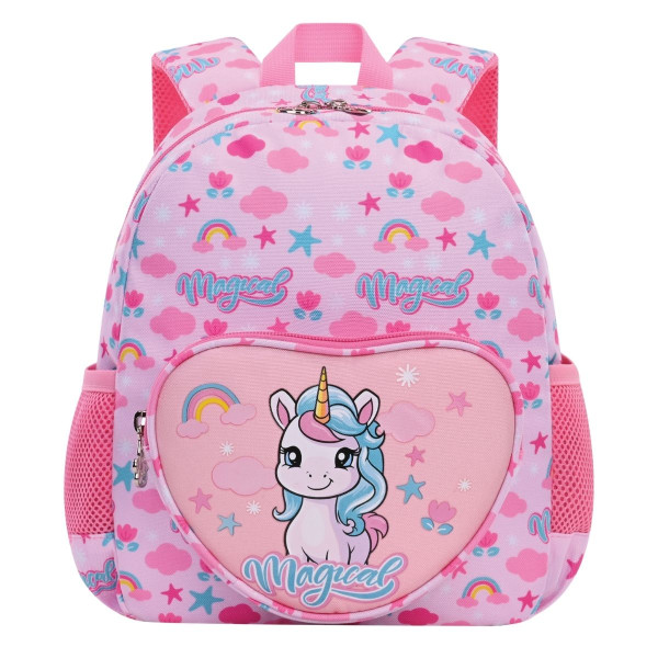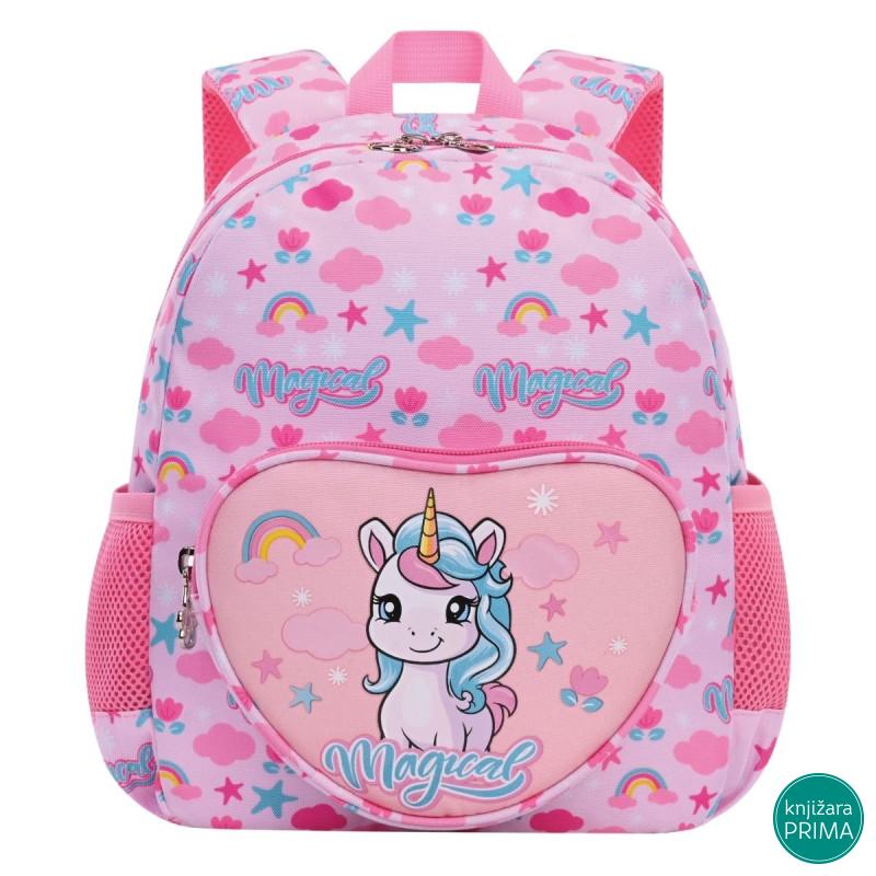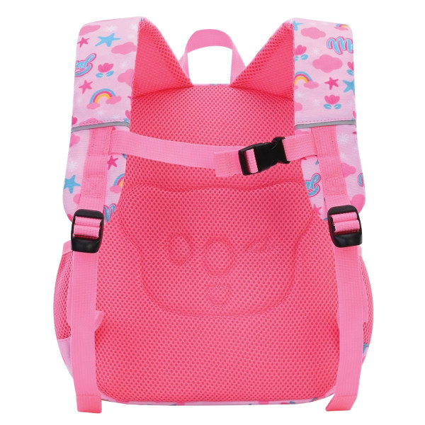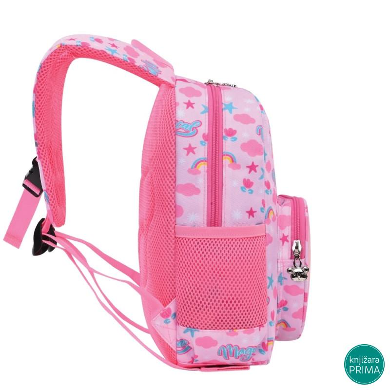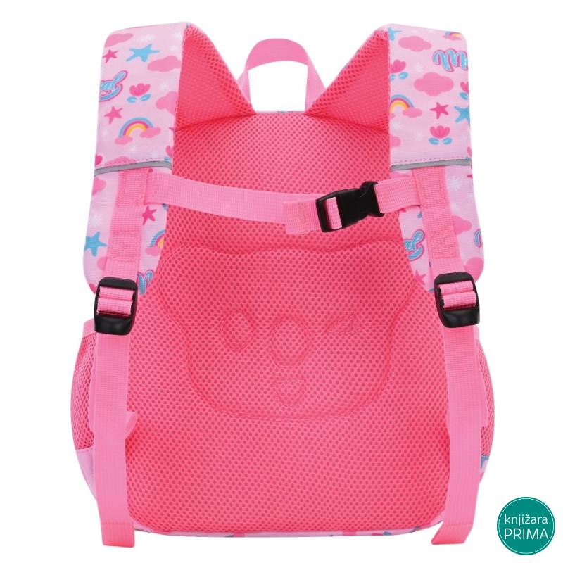Atraktivan dečiji ranac, idealan za vrtić i predškolski uzrast. Veoma lagan i udoban, sa ojačanim leđima, podesivim naramenicama i čvrstom ručkom za nošenje. Napravljen od kvalitetnog materijala sa PVC površinskom obradom. Sadrži prostranu pregradu, prednji džep i dva bočna džepa.