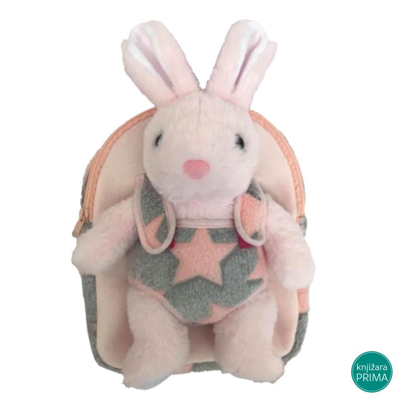 Mekani dečiji ranac sa igračkom zekom, idealan za vrtić ili šetnju. Izrađen od plišanog materijala, nežnog na dodir. Ima jednu prostranu pregradu i postavljene naramenice za udobno nošenje.