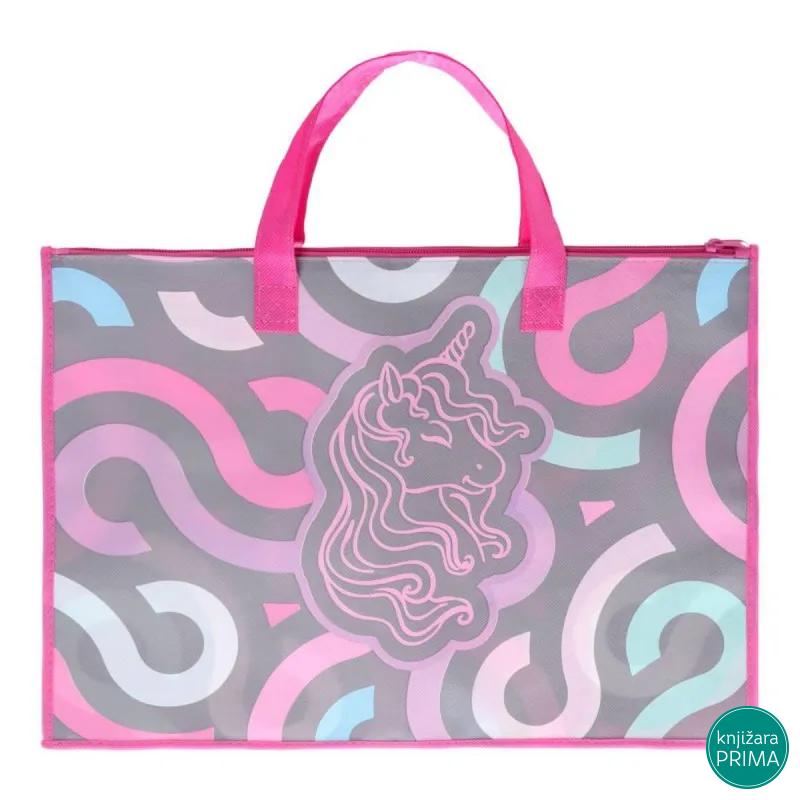 Torba pogodna za školski pribor, plastificiranog materijala sa ojačanim ručicama i ziperom. Lako se pere i vodootpornog je materijala.