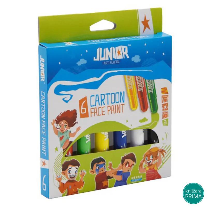 Cartoon face boja za lice visokog kvaliteta u šest osnovnih intezivnih boja. Izrađena na uljanoj bazi od kozmetičkih pigmenata ne toksična i bezbedna. Visoko kvalitetna izrada čini je veoma mekom prilikom crtanja po koži i omogućava lako brisanje. Plastično telo sa twist sistemom otvaranja obezbeđuje lako korišćenje i čist ruke. Dimenzije: 137 x 15cm (punjenje - 5x13cm)