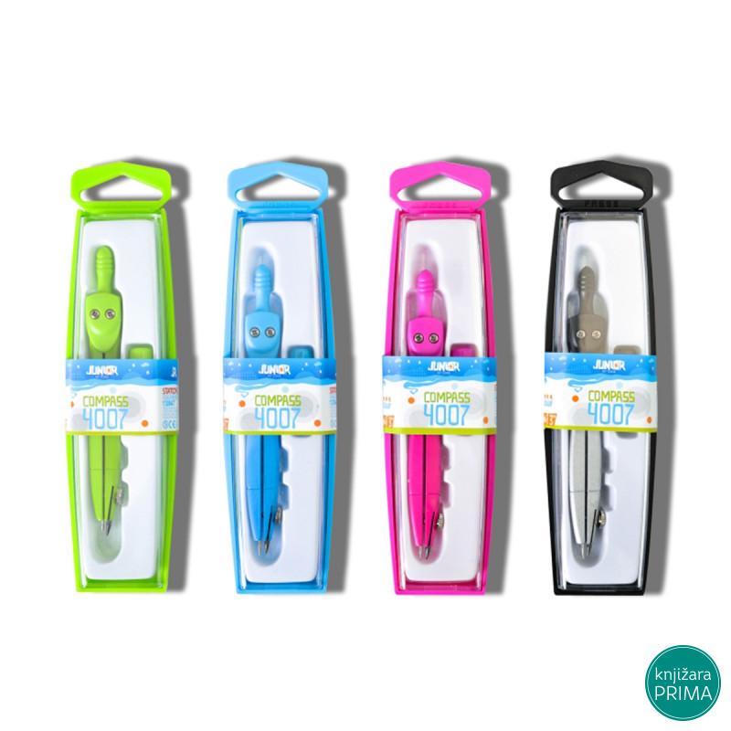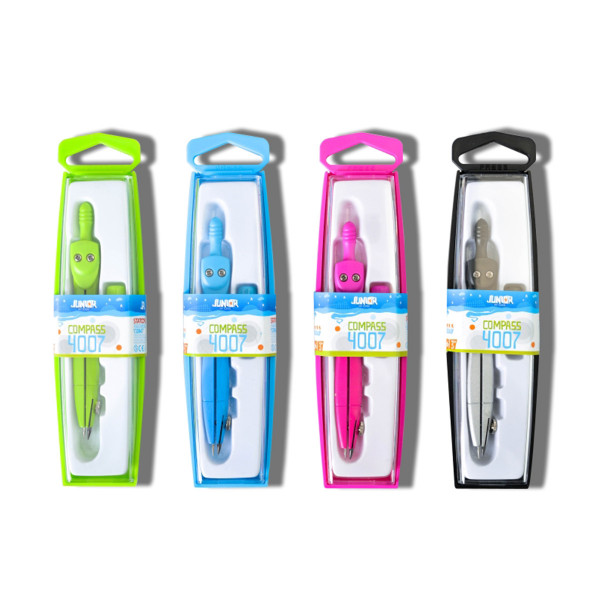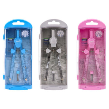 Školski šestar izrađen od metalau PVC kutijici sa rezervnim minicama. Dostupan u 4 boje.