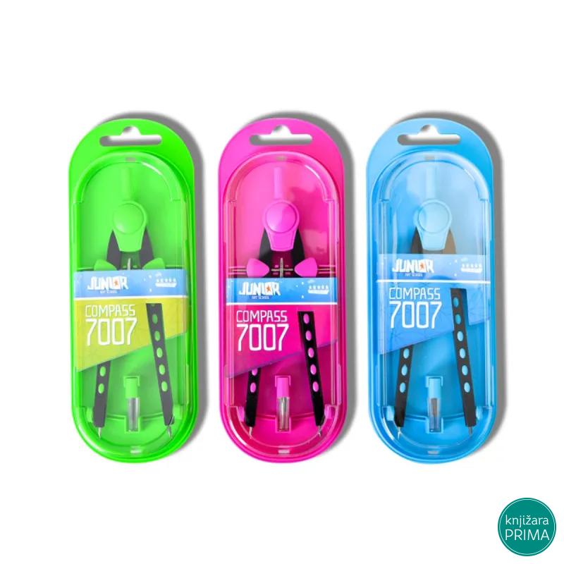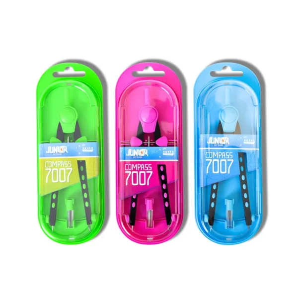 Školski šestar izrađen od metala atraktivnog dizajna. U PVC kutijici sa rezervnim minicama. Dostupan u 3 boje.
