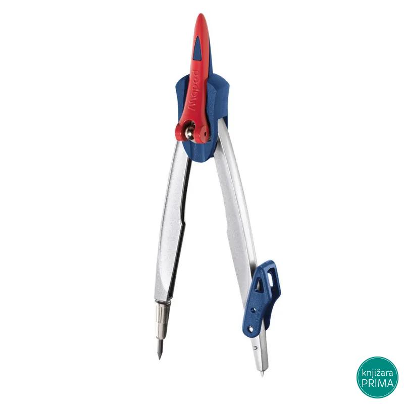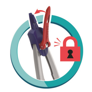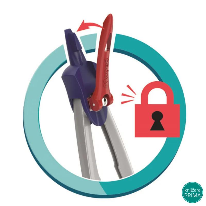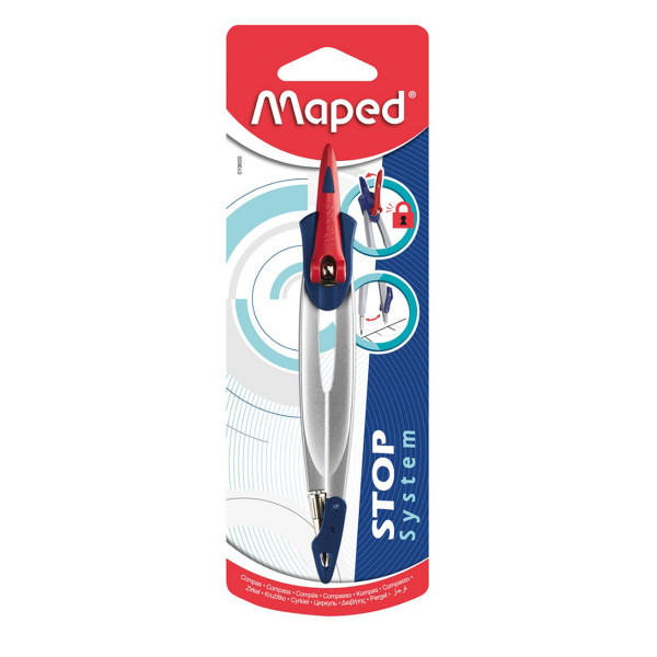 Šestar MAPED M019600 stop system – Stop sistem mehanizam – omogućava fiksiranje nogica u željenoj poziciji. – Zaštitni poklopac koji se navlači na minu i iglu. – Lako podesiv metalni šestar.