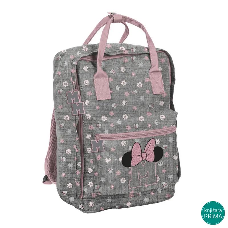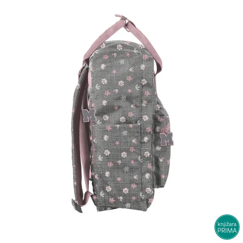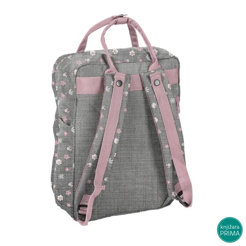 Ranac sa jednim glavnim odeljkom, prednji džep sa rajsferšlusom, dva bočna džepa, podesive podstavljene naramenice Dve ručke za nošenje, dno ojačano sunđerom.