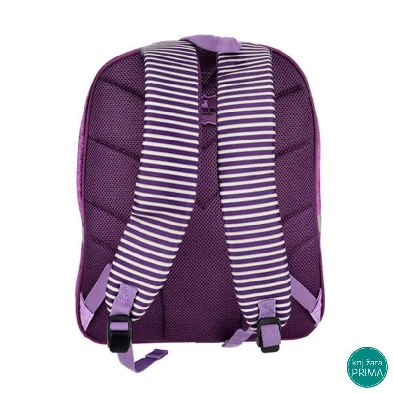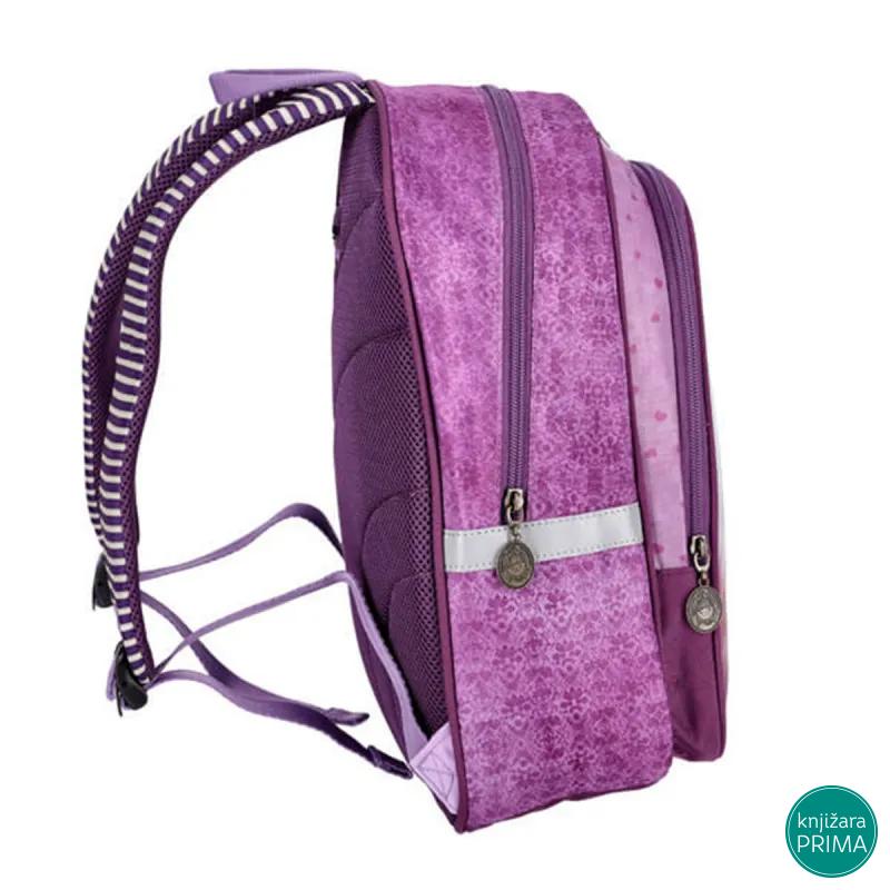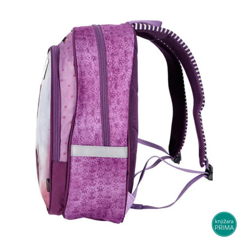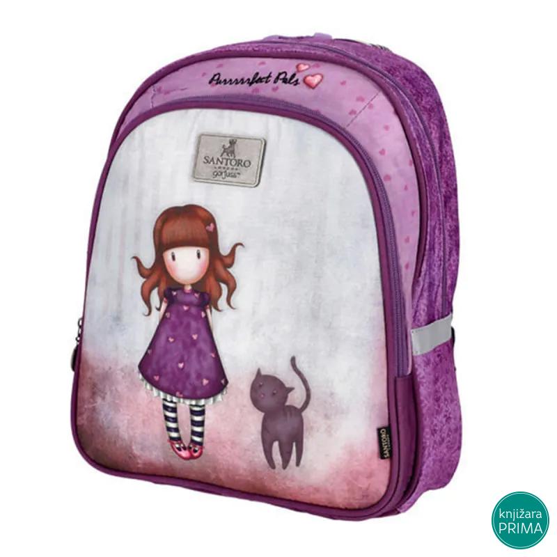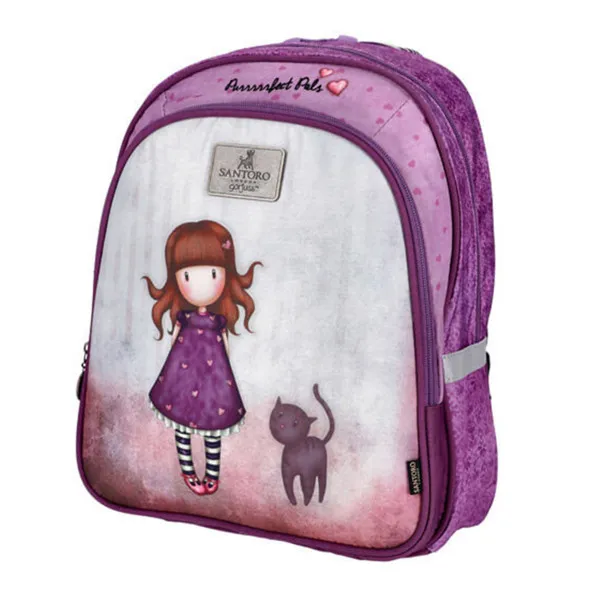 Školski ranac iz Gorjuss kolekcije izrađen od materijala koji odbija vodu i štiti od vlage sa ojačanim leđima. Ima prostranu glavnu pregradu i veliki džep sa prednje strane. Dimenzije: 38x29x10cm Zapremina: 12L Težina: 345g