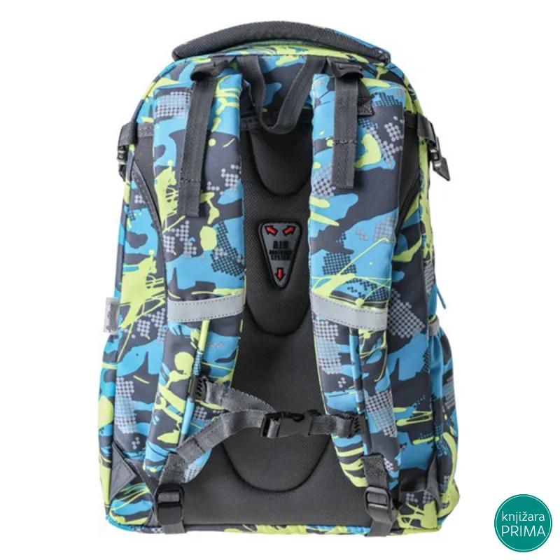 Samostojeći, triput opšiveni, vodootporna tkanina, visokokvalitetni poliester, testirani ziperi na 100.000 poteza, reflektujuće bezbednosne trake, podesive ramenice u obliku banane, meka ručica za nošenje, lagan i izdržljiv, ventilirajući džepovi sa strane, EVA ergonomska leđa, ventilirajuća leđa, štampana postava, organizator u prednjem džepu.