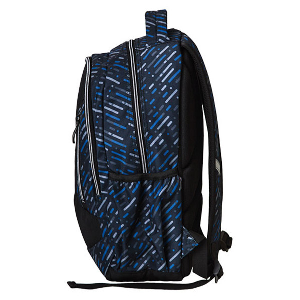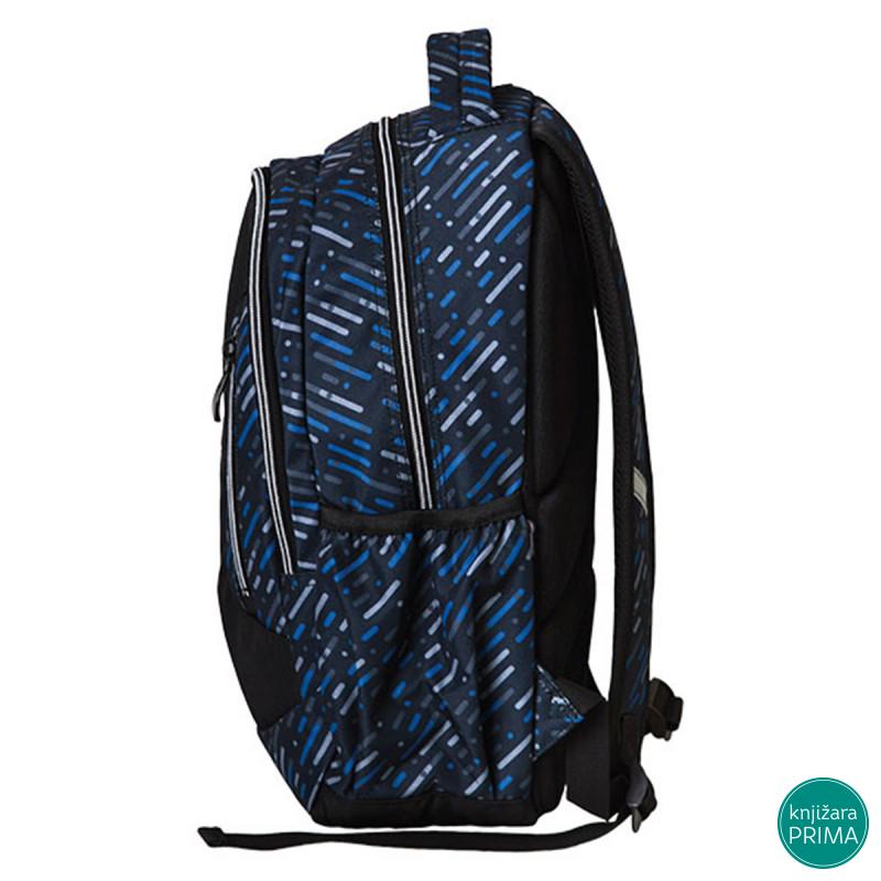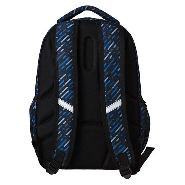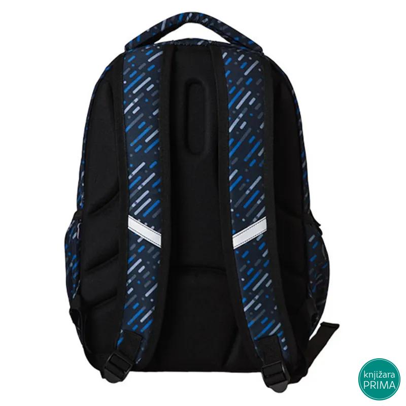 Samostojeći, triput opšiveni, vodootporna tkanina, visokokvalitetni poliester, testirani ziperi na 100 000 poteza, reflektujuće bezbednosne trake, podesive ramenice u obliku banane, meka ručica za nošenje, lagan i izdržljiv, džepovi sa strane, EVA ergonomska leđa, štampana postava.