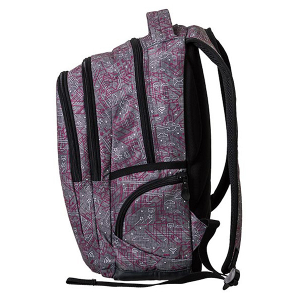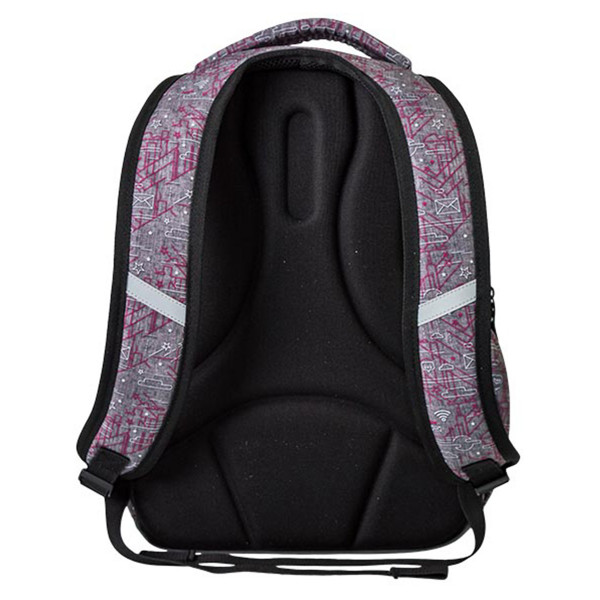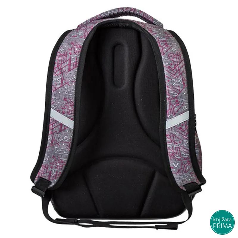 Samostojeći, triput opšiveni, vodootporna tkanina, visokokvalitetni poliester, testirani ziperi na 100 000 poteza, reflektujuće bezbednosne trake, podesive ramenice u obliku banane, meka ručica za nošenje, lagan i izdržljiv, džepovi sa strane, dupli džep sa strane sa ziperom, EVA ergonomska leđa, štampana postava.