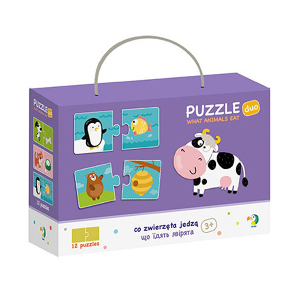 Jednostavna slagalica za najmlađe. Uz ovaj artikal kroz igru nauči šta jedu životinje. Pakovanje sadrži 24 dela od kojih se može složiti 12 parova. Veličina delova je prilagođena je deci starijoj od 3 godine. Veoma lako se spajaju. Dimenzije kutije: 18 x 12 x 6 cm. . Detaljnije