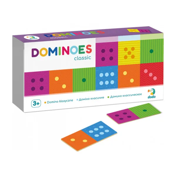 Šarene domine sa brojevima čiji veseli dezen privuče dečiju pažnju. U toku igre razvija se memorija koncentracija i logično razmišljanje. Dimenzije pakovanja: 18x12x6 cm