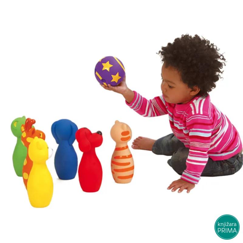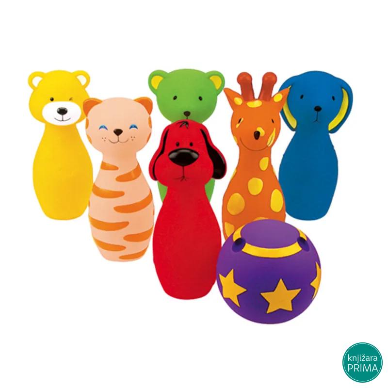 Kegla: 5 x 19 cm Set za kuglanje napravljen od plastike sadrzi 1 loptu i 6 slatkih kegli u obliku zivotinja. Bebe mogu da se igraju sa njima i da vezbaju misice ravnotezu i socijalne osobine igrajuci se sa svojim vrsnjacima. . Detaljnije
