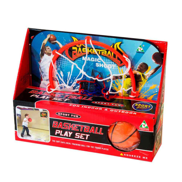 Mini basket set za buduće zvezde košarke! Lagan i kompaktan da ga poneseš u vrtić ili parkić. Meka loptica omogućava da se bez brige od loma igraš i u stanu. Sa koje daljine možeš da zakucaš svoju prvu trojku? Izazovi tatu na 1 na 1 i pokaži mu ko je tata mata basketa! Pored beskrajne zabave ova vrsta igre pruža najmladjima razvoj baansa koordinacije i finih motoričkih sposobnosti. Uzrast: 3+ godine Materijal: plastika karton Dimenzije: 24 x 17 x 7 cm Set sadrži: Obruč sa vakum-hvatom i penastu lopticu