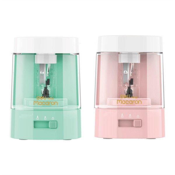 Stoni zarezač na baterije iz kolekicje Macaroon dostupan u dve pastelne boje. Dimenzije proizvoda: 5x8x8 cm Težina: 0.19 KG 3 nivoa podešavanja oštrine olovke Rezač koristi 2 baterije 15v AA LR6