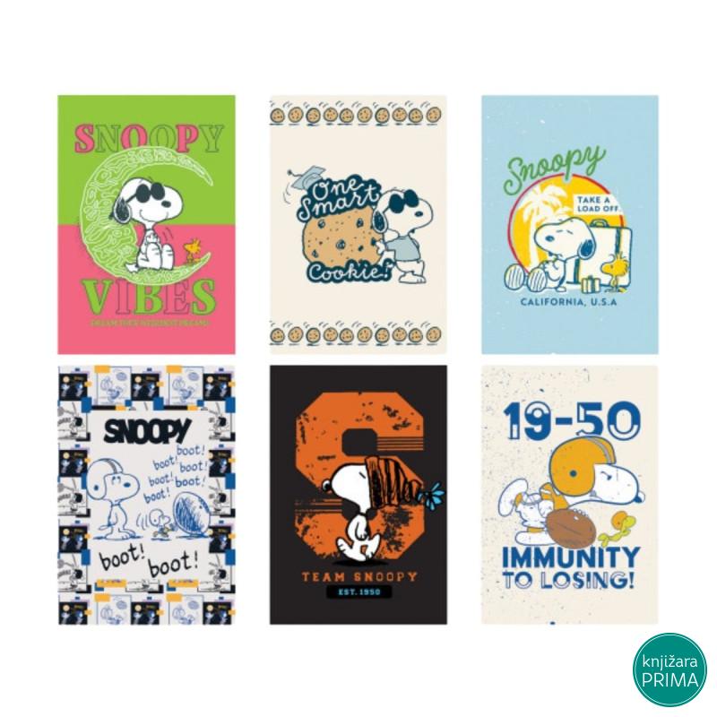 PREMIUM SVESKE / MEKI POVEZ / SNOOPY KOLEKCIJA / 52 LISTA - KORICE: Karton 230g/m2 / - ŠTAMPA: 4/1 + mat plastifikacija + 3D UV lak / - BLOK: 52 lista. Wood-free čisto beli papir 75g / Zaobljene ivice