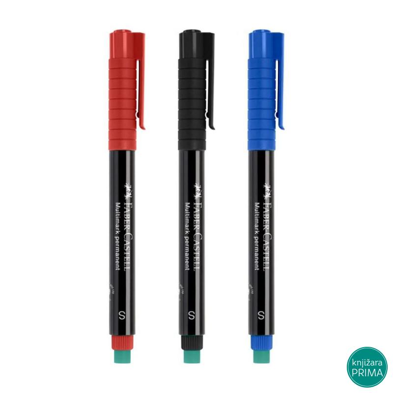 Vodootporni univerzalni marker sa integrisanom specijalnom gumicom pouzdano piše na skoro svim površinama. Dostupan u crnoj, plavoj i crvenoj boji u 3 različite širibe vrha S, F i M.