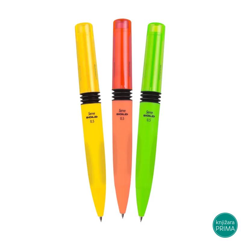 Patent olovka SERVE koristi mine debljine 0.5 mm, na vrhu olovke se nalazi super dugačka gumica.