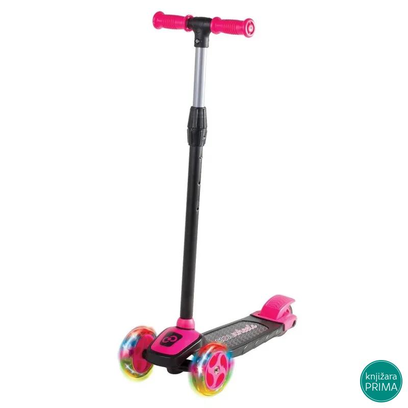 Trotinet sa tri točka Svetleći silikonski točkovi Lak za upravljanje Nosivost do 50 kg Aluminijumska šipka Podesiva visina na 3 nivoa Materijal: aluminijum plastika guma i silikon. Detaljnije