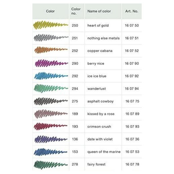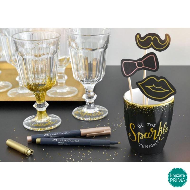 Ukrasite svetli, tamni ili šareni papir ili čak glatke površine, kao što su plastika, folija, porcelan, staklo i metal, sa vrhunskim metalik efektom. Možete čak učiniti da drvo ili kamenje izgledaju sjajno. Nakon sušenja, boja je otporna i na mrljanje i na prskanje vode. Čak se mogu učiniti vodootpornim (ne mogu se prati u mašini za sudove) tako što ćete ih staviti u rernu na 160°C na 30 minuta. Specijalno metalno mastilo na bazi vode je bez mirisa i ne prodire kroz papir. Štaviše, nije potrebno pumpanje ili mućkanje, mastilo ravnomerno teče kroz vrh vlakana od 1,5 mm. Ovo vam omogućava da odmah počnete da crtate!