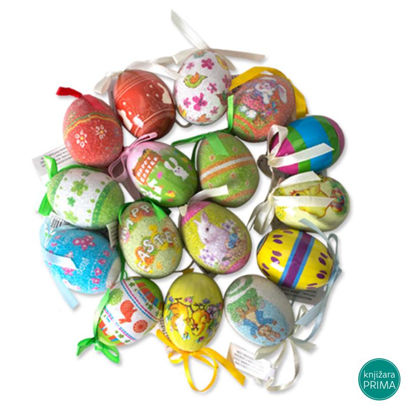 Uskršnja jaja sa trakom kao praznična kućna dekoracija. Materijal: polyfoam Visina: 6 cm. Detaljnije