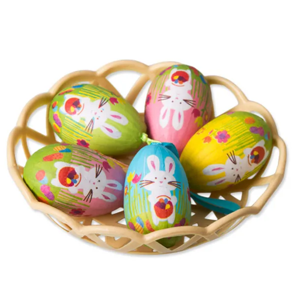 Uskršnja dekorativna jaja u korpici. Set sadrži 5 deko jaja i korpicu. Dimenzija jajeta: 6 cm Materijal: stiropor